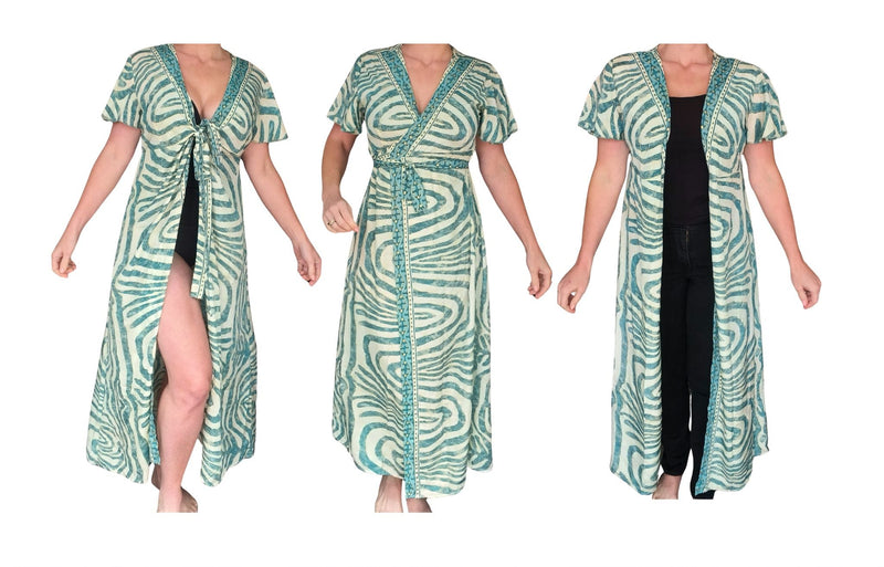 A versatile piece that transforms from beach cover-up to wrap dress to kimono. Made with an adjustable waist tie for a flattering fit.